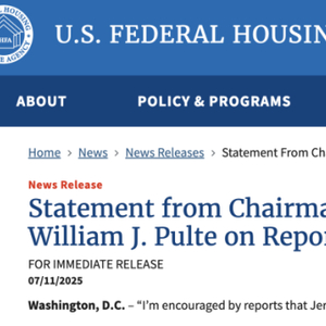 比尔·普尔特在美国联邦住房金融局 (FHFA)官网发表声明称:“有报道称杰罗姆·鲍威尔正在考虑辞职,这让我感到鼓舞。我认为这将是对美国的正确决定,经济将会繁荣。”