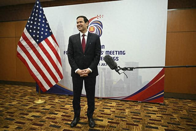当地时间2025年7月10日,马来西亚吉隆坡,美国国务卿鲁比奥在会议中心出席第58届东盟外长会议及相关会议期间参加媒体吹风会。视觉中国 图