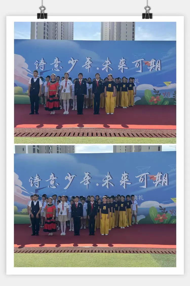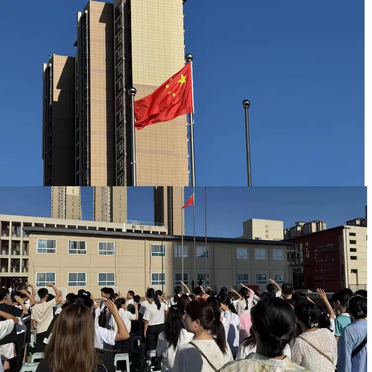 清晨的阳光洒满操场,在全体师生的注视下,五星红旗缓缓升起。当熟悉的国歌奏响,坚定的歌声回荡在校园上空,每一个挺直的身板里,都藏着对祖国的敬意,对母校的眷恋。