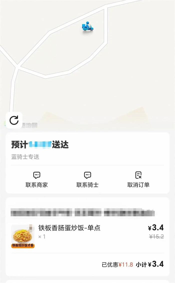 具体优惠力度如何?12日,记者在上海进行实测体验,上淘宝点击闪购,搜索“超级星期六”领取了大额券,且该页面下的餐品价格一般不超过20元,最便宜的一碗香肠蛋炒饭仅需3.4元,免配送费,足够吃饱。