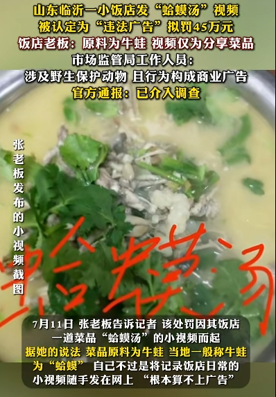 饭店“发蛤蟆汤照片被罚45万”,仍有疑问待解