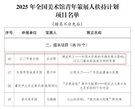 据悉,2025年全国美术馆青年策展人扶持计划项目我省共一个入选,六个提名,排名全国第一。