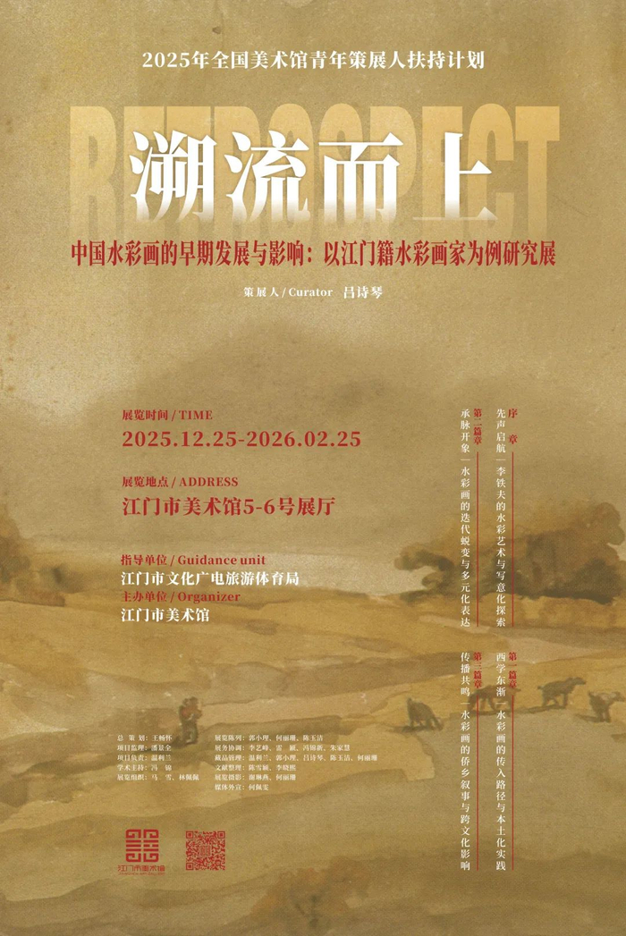 江门市美术馆青年策展人吕诗琴申报的《溯流而上——中国水彩画的早期发展与影响:以江门籍水彩画家为例研究展》项目主要立足于江门籍水彩艺术名家,以李铁夫先生的个案研究作为展览的序章,不仅是对李铁夫个人的致敬,也是对中国水彩画发展脉络的一次溯源梳理,同时也为水彩画研究提供了新的视角。