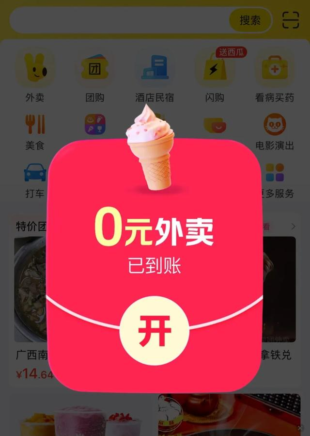 记者打开美团,随即收到“0元外卖已到账”的弹窗,点开即领取了0元喝饮品、0元喝瑞幸、古茗鲜活柠檬水兑换券3张到店自取优惠券,以及瑞幸咖啡兑换券、早餐兑换券两张外卖优惠券。据网友晒出的订单,仅支付0.01元就点到了茶百道的中杯茉莉奶绿外卖。