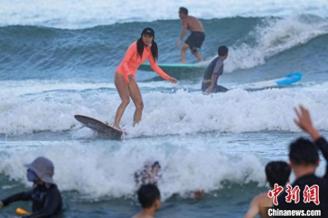 图为游客在日月湾体验冲浪运动。中新社记者 骆云飞 摄