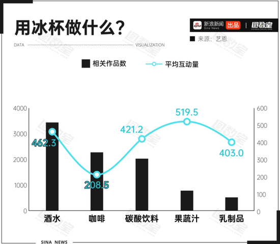 酒、奶制品、茶、咖啡、碳酸饮料、果蔬汁,只要是“稀的”都能放进冰杯里,再加上奶盖、炼乳、果冻等产品,多巴胺的配色、丰富的配料和创意搭配,都让冰杯成为了社交货币。