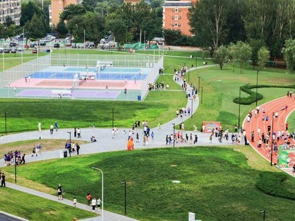 7月12日,海淀区肖家河·绿动天地开园,这个19.35公顷的超大运动场就在北五环边上,为三山五园文化带增添运动元素。这里曾是城中村,随着北京市和海淀区“十四五”规划推进迎来蜕变,成为一个可同时容纳7000人运动健身、生态休闲、潮流社交的复合型城市新地标,为周边10万居民填补了区域大型专业运动空间的空白。
