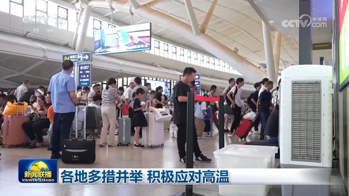 7月12日,湖北多地发布高温预警。在武汉火车站,暑期出行旺季,日均客流达22万人次。铁路部门在站内保障空调温控同时放置冰块、增设电扇等,站外候车点和广场开启喷淋系统,为排队候车的旅客增湿降温。