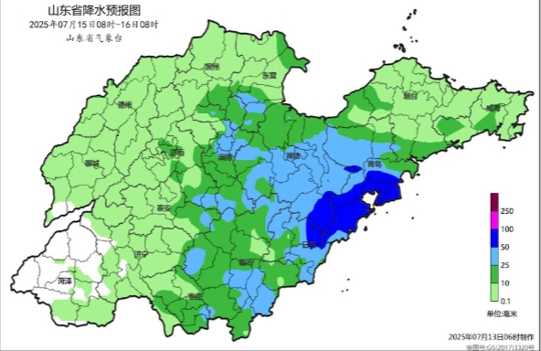 2025年7月15日08时—7月16日08时降水量预报(毫米)