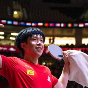 他在决赛中的对手将是队友林诗栋和日本队选手张本智和之间的胜者。