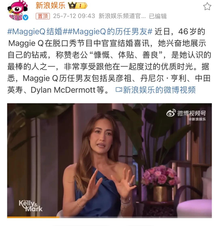 近日,46岁的MaggieQ在美国一档节目上,突然宣布了结婚喜讯!