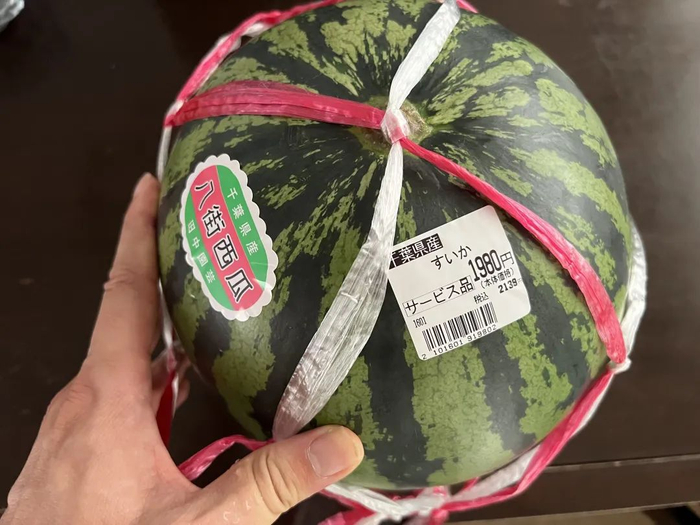 在国内直男中人气最高的日本成人影星苍井空曾经说:日本的西瓜太贵, 她吃不起。其实她这样说,就是为了讨好中国的直男,吸粉而已。日本的最低工资现在大约是1,000日元。我买的这个西瓜,拿最低工资的日本人只需要工作两个小时就可以买了。 大名鼎鼎的苍井空工作几秒就可以买了。