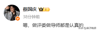 对此,13日下午,蔡国庆转发相关博文,并正面回应争议,称:“嗯,做评委做导师都是认真的”。