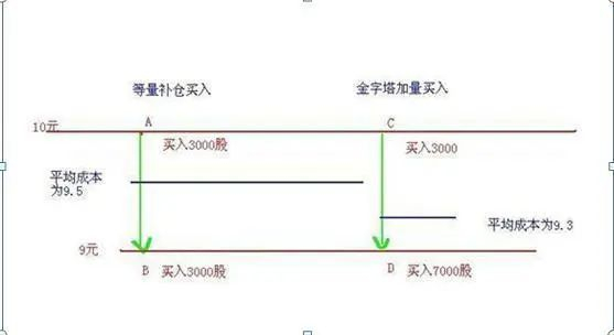 1、我们来算2个帐,假设投资者A,B都买入一直股,A 在10元买入3000股,B 也在10元买入3000股,此时他们的成本都为10元。随后股价下跌,跌到9元A补仓3000股,B则补仓7000股,此刻,A的平均成本为9.5元,补仓后亏损比例为5.26%;B补仓后成本为9.3元,补仓后亏损比例为3.22%。