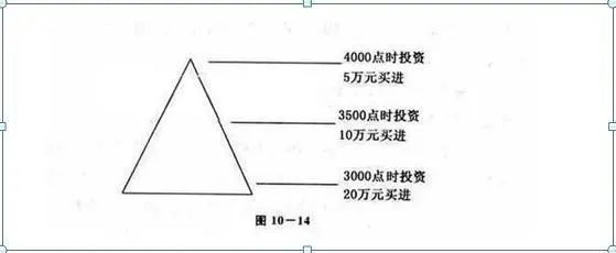 2、投资者在大盘3000点的时候投资20万元买进,涨到3500点时投资10万元买进,涨到4000点时投资5万元买进,行情越高,投资额越小。