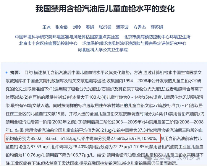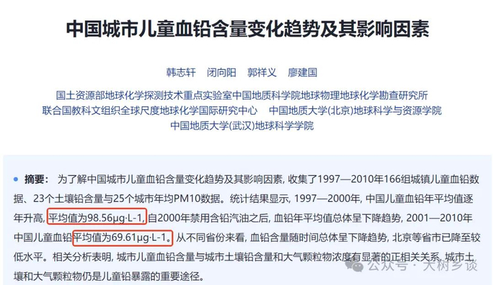 这是不是看起来很吓人,然而这已经是30多年强化治理的结果。想想看1997年到2000年儿童平均每升98.56微克,意味着大概一半儿童血铅超过每升100微克。而每升30微克,即使按照正态分布,也一定有不少孩子血铅浓度超过每升100微克、200微克,按照2006年原卫生部制定的《儿童高铅血症和铅中毒预防指南》,分别对应“高血铅症”和“铅中毒”。