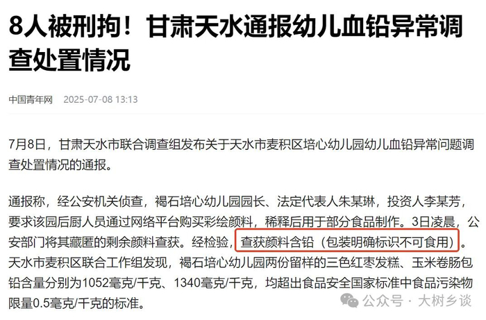 比如在“血铅事件”中,小镇看到有人质疑官方通报说“通过网络平台购买彩绘颜料,稀释后用于部分食品制作”,最终导致“两份留样的三色红枣发糕、玉米卷肠包铅含量分别为1052毫克/千克、1340毫克/千克,均超出食品安全国家标准中食品污染物限量0.5毫克/千克的标准”。