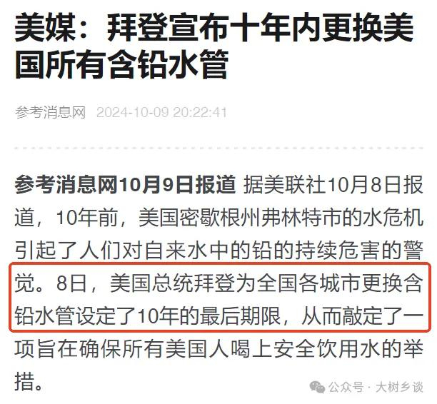 于是2024年10月拜登宣布为全国城市更换含铅水管设定10年的最后更换期限,但这不过是为了竞选而已,特朗普上台后,自然没下文了。