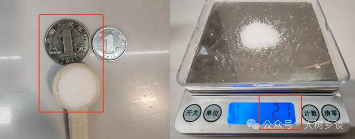 不要觉得1克多很多。小镇用盐对比了下,注意下图,盐勺面积跟1元硬币差不多,而且勺子很浅,而就这点盐,已经有2.1克。大家不妨想想自家做菜、做主食,放的盐有多少?
