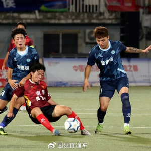 🔹7月12日晚,南昌队球员(红衣)与景德镇队球员(蓝衣)在球场上拼抢。中新社记者 刘占昆 摄