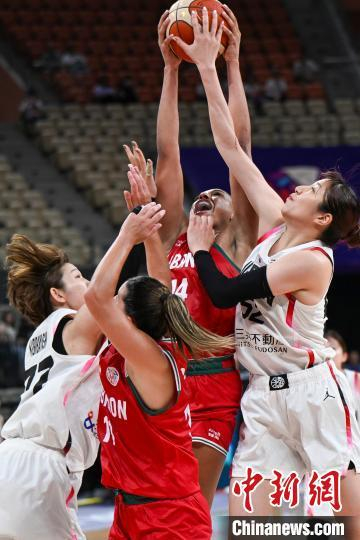 7月13日,2025女篮亚洲杯在广东深圳开赛,日本女篮72:68战胜黎巴嫩女篮。图为双方球员在比赛中拼抢球权。中新社记者 陈骥旻 摄