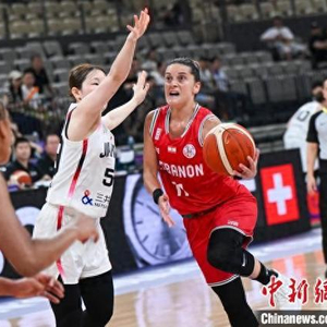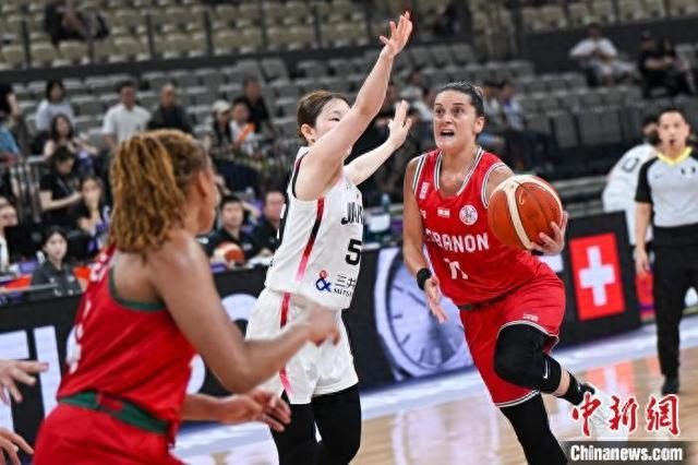 7月13日,2025女篮亚洲杯在广东深圳开赛,日本女篮72:68战胜黎巴嫩女篮。图为黎巴嫩球员Jillian Archer(左)在比赛中进攻。中新社记者 陈骥旻 摄