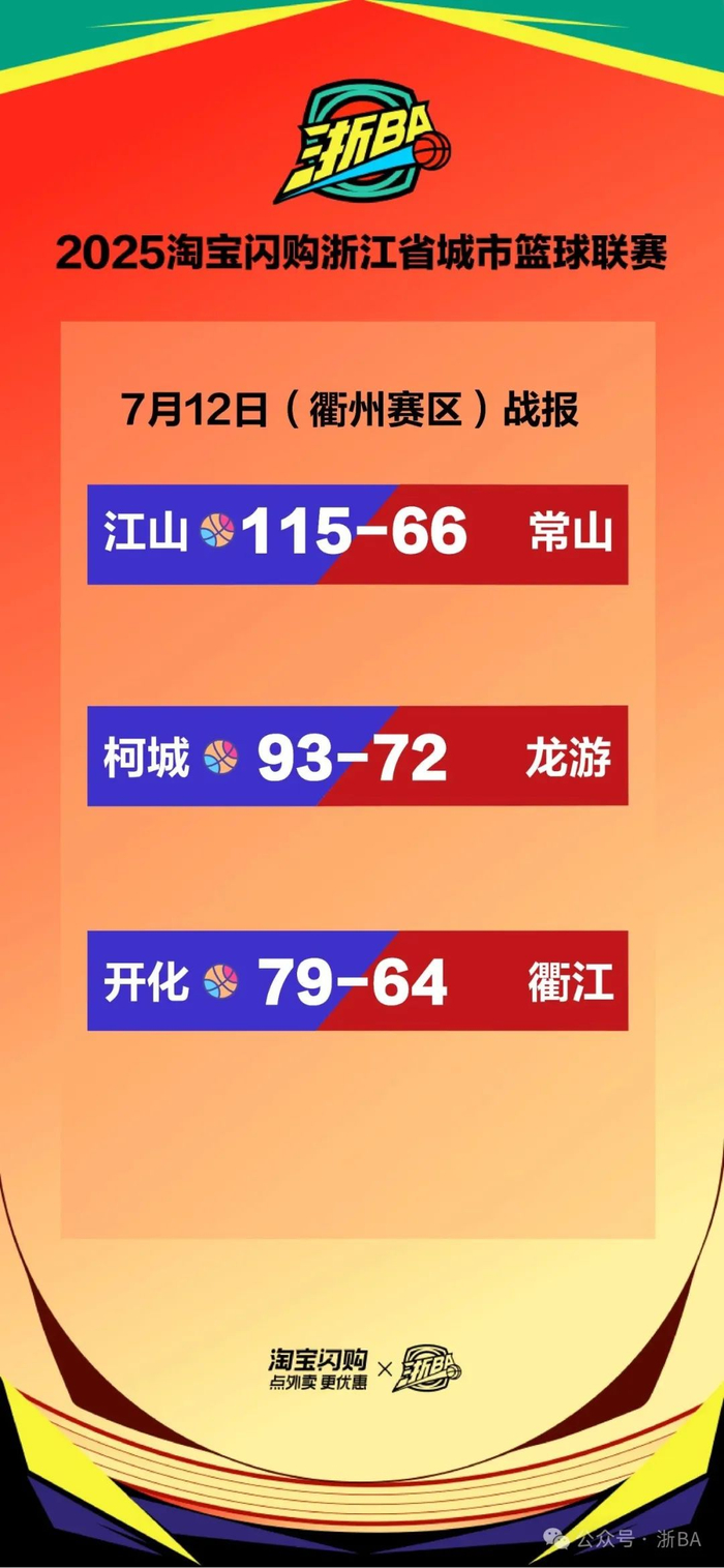 最大比分差出现在衢州,江山队气势如虹,以115:66大胜常山队。