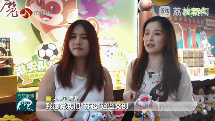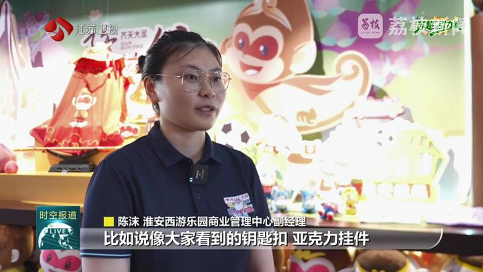 淮安西游乐园商业管理中心副经理陈沫说:“围绕‘苏超’比赛设计了很多周边产品,比如说像大家看到的钥匙扣、亚克力挂件。目前,我们首批的毛绒挂件上线不到一个小时就已经售罄,非常火。”