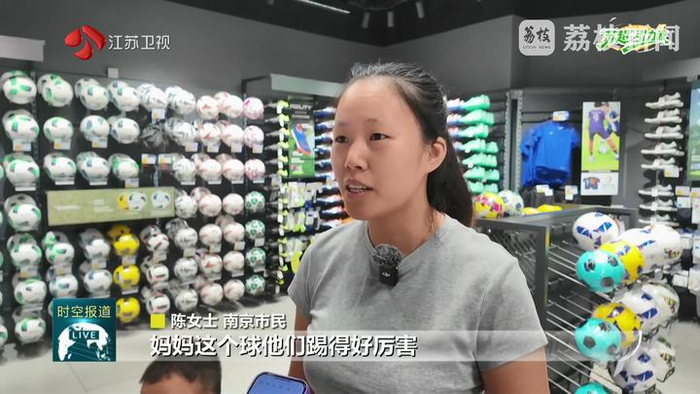 南京市民陈女士说:“上次我们关注到南京和苏州在打比赛。小朋友就讲妈妈他们踢得球好厉害,说自己也想踢。所以今天就来迪卡侬来看一下。”