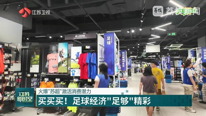 赛场上,球员们奋力比拼;看台上,球迷们摇旗呐喊,火热的氛围成为“苏超”圈粉的催化剂,也带火了足球经济。记者走访南京、淮安、泰州等地的运动用品专卖店发现,足球相关产品琳琅满目,吸引众多消费者。球衣、球裤、球鞋加足球,不少人更是一次购齐“四件套”。为了满足消费者的需求,各大商家纷纷加大了足球相关产品的进货量,并推出了一系列促销活动。