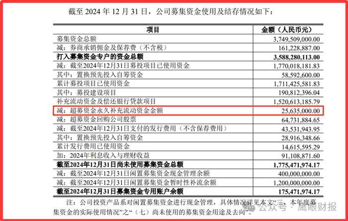 15亿元闲置募资被临时用于补充流动资金(2024年已操作过12亿补流)。