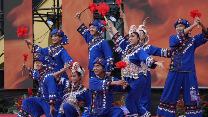 7月12日,云南红河金平,彝族火把节开幕式舞蹈表演。王继兵摄(中经视觉)