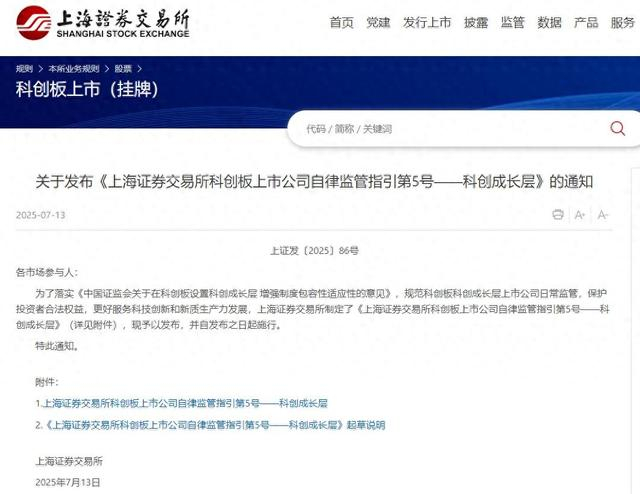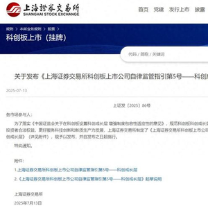 为了落实《中国证监会关于在科创板设置科创成长层 增强制度包容性适应性的意见》(以下简称《科创板意见》),进一步深化科创板改革,7月13日,上交所正式发布了《科创板上市公司自律监管指引第5号——科创成长层》等配套业务规则。