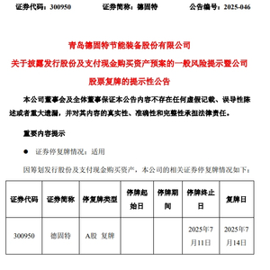 德固特重大资产重组预案出炉,明日复牌