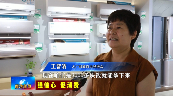 大厂回族自治县群众 王智清:看的时候是4000多块钱,通过咱们的补贴,现在咱们是3000多块钱就能拿下来,我觉得力度是挺大的,确实也挺合适的。