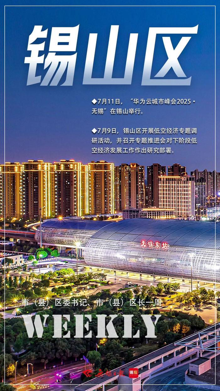 万物蓬勃生长,夏日美景令人赏心悦目。尽管天气炎热、暑气蒸腾,但一幕幕别样的景致正在悄然铺展。无锡大地上,发展热情处处高涨,大家全情投入,在紧张有序的工作中挥洒汗水。本周,各板块咬定目标不放松,紧扣经济社会发展的热点、重点,深入调研走访,推动低空经济发展、企业科技创新、重点产业链延链补链强链,在真抓实干中挖潜能、增动能。同时,围绕太湖综合治理、城市精细化管理提升、集宿区治理提升等工作发力,为展现锡城更高颜值而持续努力。