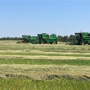 盛夏,地处科尔沁沙地腹地的通辽市开鲁县小街基镇6万余亩羊草迎来首茬收获季。无际的绿草,将成为牛羊的营养大餐,其种子经过初加工后也将送到包衣厂,用于全国各地的生态修复和草种繁育。