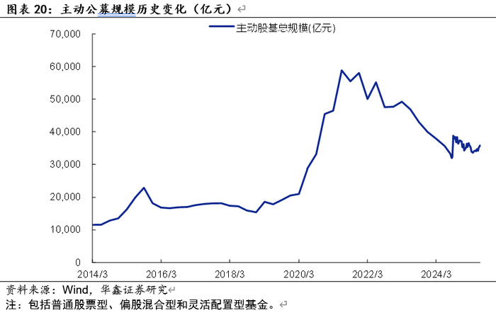 根据最新净值及份额估算,截至7月11日,主动公募股基资产净值在3.57万亿元,较2024Q4的3.66万亿元小幅下降。