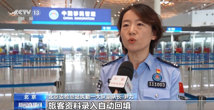 北京边检总站执勤一大队副队长 尹力:北京边检总站研发上线旅客资料录入自动回填、航班旅客流量预测等8项应用程序,外籍人员通关效率提升约30%;在各执勤现场设立临时入境许可签发专用区域,新增11条临时入境许可专用通道,推动临时入境许可签发效率提升60%。