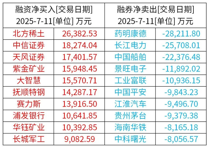 前一交易日融资融券净买入、净卖出前10个股