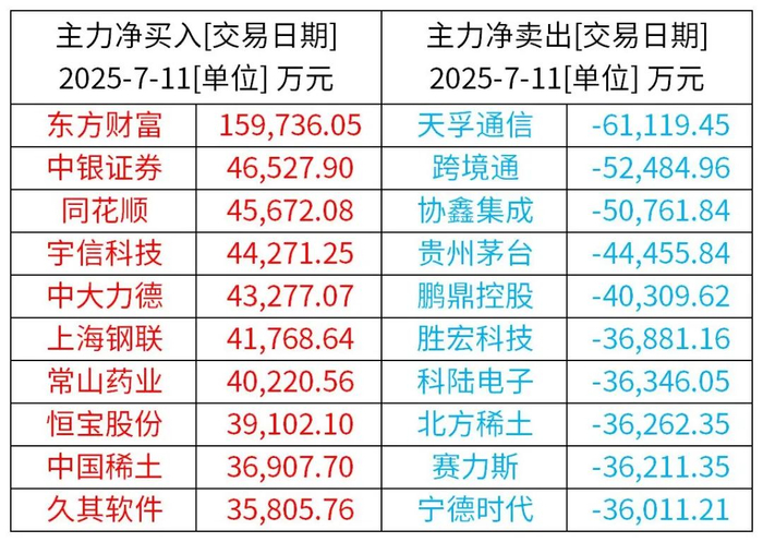 前一交易日主力资金动向