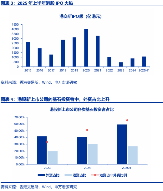2025年以来港股市场关注度提升,投资者尤其关注外资是否流入港股。我们认为外资正在流入港股市场,主要体现在港股IPO基石投资者和A-H溢价收敛、部分个股出现港股溢价等方面。