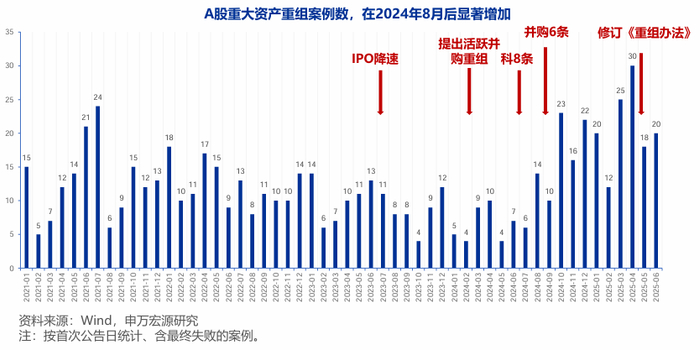 政策激活并购市场,A股并购量质齐升,去年9月至今年6月重大资产重组(含定增并购)已接近两百起,同比增幅高达172%,月均案例数增加12个。政策红利为上市公司并购科创资产扫清了诸多障碍。2025年5月16日,证监会发布修订后的《上市公司重大资产重组办法》,“四个首次” 直击硬科技并购中的估值退出痛点。其中包括: