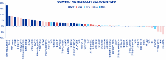 6月全球资产价格回顾:日本和韩国股市涨幅靠前,多数国家的股市都录得了正收益。