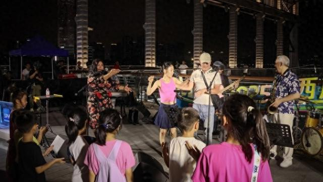 从音乐文创到“全城交响”,音符跃动着消费的脉搏。7月11日傍晚,西岸梦中心在微风与乐声中变身活力舞台。阿尔瓦罗拉丁巡游乐队骤然奏响的奔放拉丁节奏,瞬间点燃了北区内街。鲜艳服饰的乐手们引领巡游队伍前行,沿途路人纷纷驻足。入夜后,焦点转向浪漫的梦船坞,雪莉·玛丽亚与拉丁计划爵士乐队以融合拉丁热力与爵士慵懒的独特韵律点亮夜色。台下,孩子们踩着鼓点欢快舞动,大人们笑容满面地自发合拍鼓掌。“很愉悦,氛围特别好,不受拘束!”带孩子来的曼迪道出心声。长期关注MISA的市民张维赞叹:“户外碰撞出的不同音乐元素,特别契合上海海纳百川的气质。”