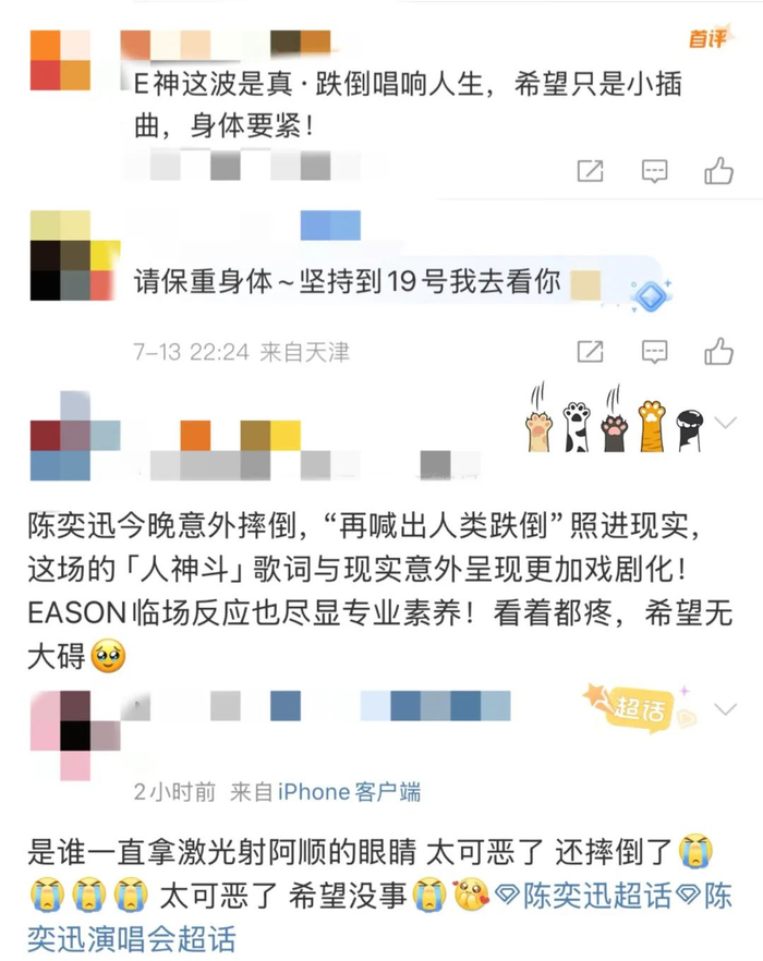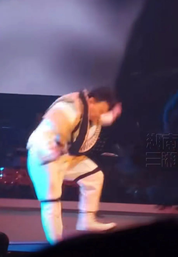 很多现场的歌迷表示,摔下去很大的声音,尽管他之后又爬起来了照常唱歌,但还是让歌迷们很担心。