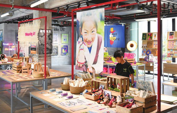 7月13日,小朋友在长沙油脂厂艺术商店内挑选商品。在湖南省长沙市天心区,12座外表斑驳的油罐排列在湘江畔。这里曾是长沙市粮油公司油脂仓库,见证了市民提着油壶凭票打油的历史,上世纪90年代停止运营后一度闲置。今年7月初,改造后的长沙油脂厂焕新开市。该项目引入了策展商业、文化创意、体验餐饮等新业态,咖啡店、展览馆、艺术商店等集聚于此,满满的工业风和新潮多元的消费场景吸引市民和游客。新华社记者陈振海/摄