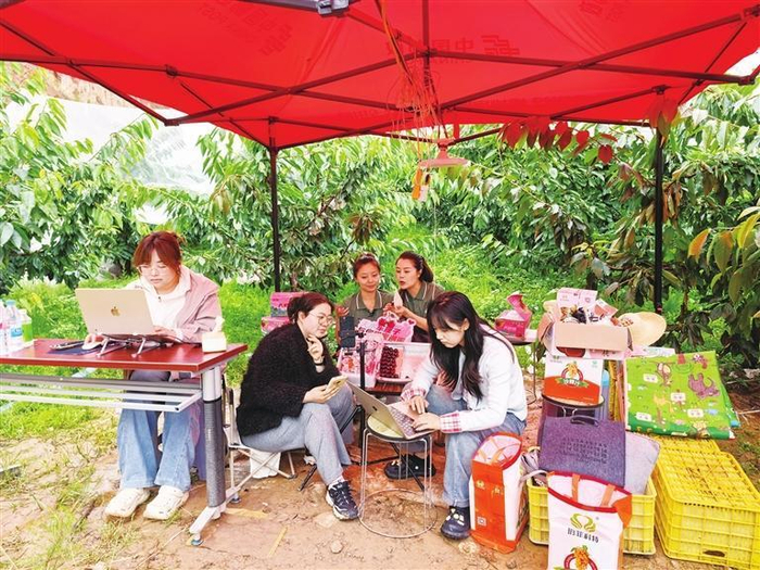 “甘肃邮政”账号团队在田间地头直播卖樱桃。