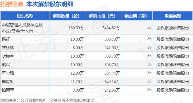 本次解禁涉及股东明细见下表: