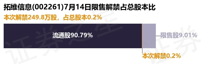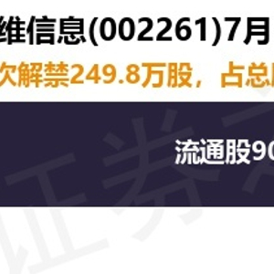 拓维信息(002261)249.8万股限售股将于7月14日解禁,占总股本0.2%